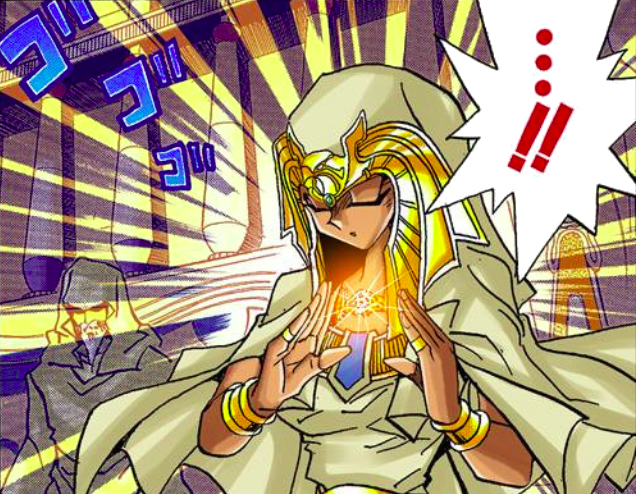 [ 'Legendary Knights... she can't mean Timaeus, Critias, and Hermos.' Yugi looks back at Atem. 'Can she?'