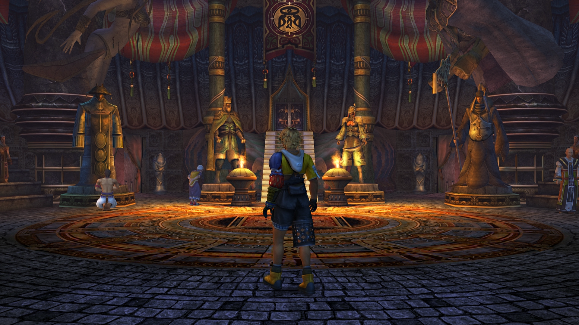 Yugi snaps out of his thoughts the moment Yuna starts instructing him again. He raises his eyes to the four statues that stand around the temple, then the two statues that loom over head. Eventually, he does settle on one statue. Little known to him that it is the statue of High Summoner Braska, Yuna's father. He simply can feel there's something special about that particular statue. Everyone seems to regard it more than the others.